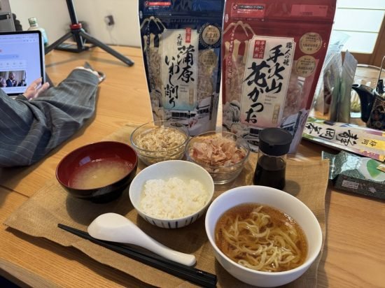 休憩も無くバリバリ配信している彼女たちは、だし屋の試食に大喜びww