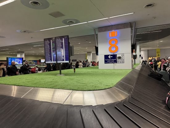 今、荷物を待っております。