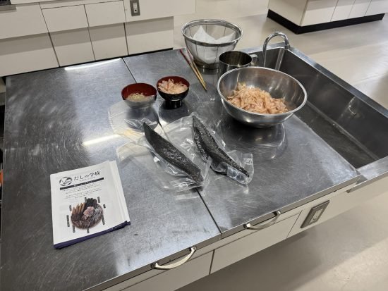 鰹節についての話をして、削り節を食べて、だしを取ります。