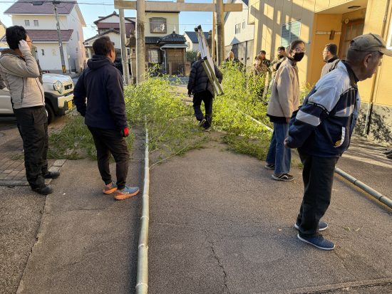 地元の山から竹を切り出しまして、設置場所に運びます。
