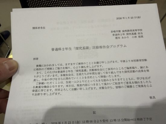 城南高校 普通科2年生「探究基礎」活動報告会
