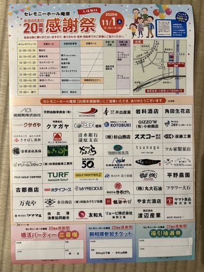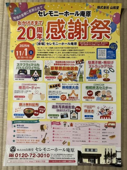 セレモニーホール庵原20周年感謝祭♪お知らせです(`・ω・´)ゞビシッ!!
